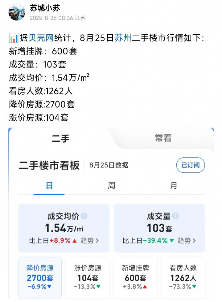 苏州回暖了, 二手房成交均价1.54万元, 环比上涨8.9%, 什么信号?
